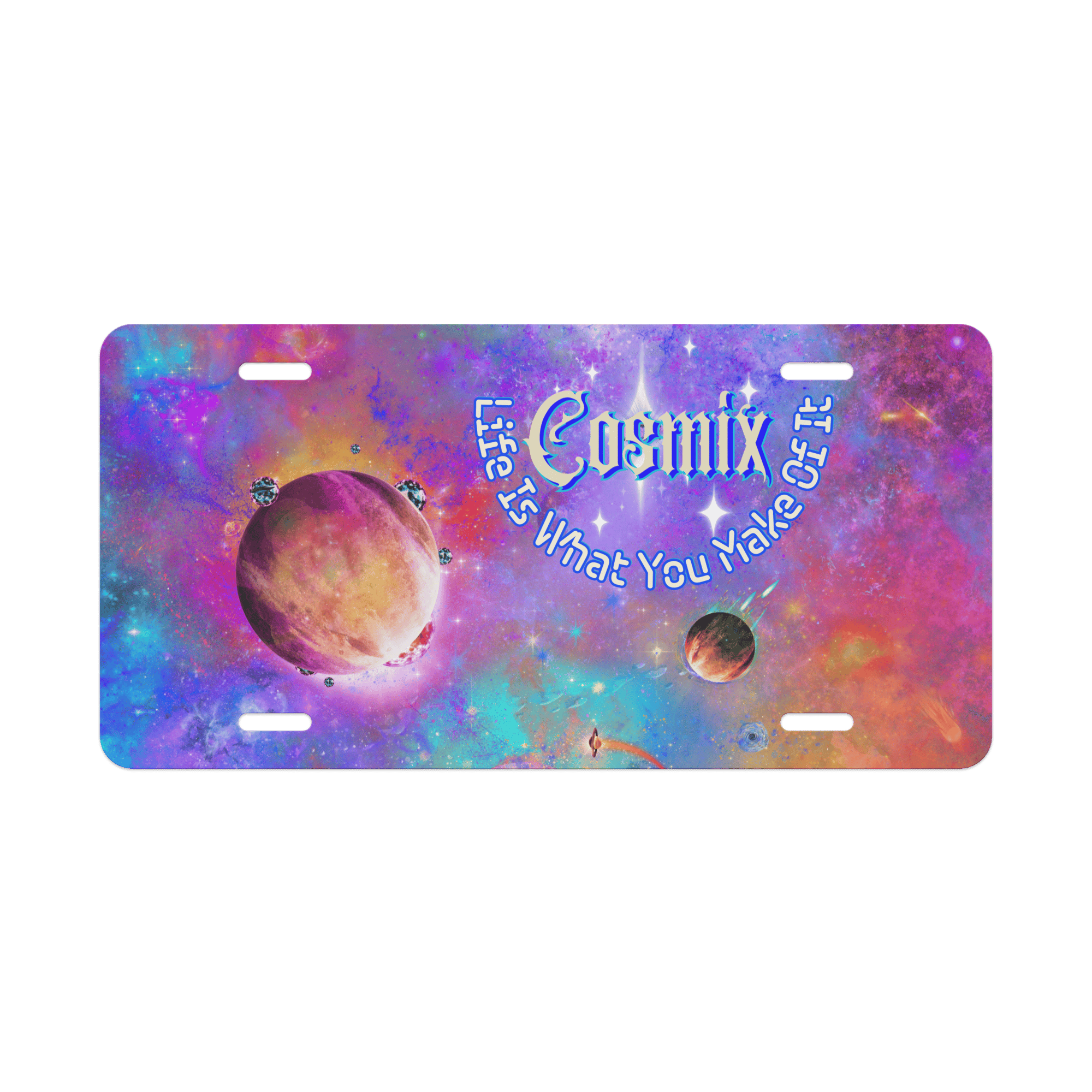 Add serious flair to your ride or room with this vanity plate. Glossy, lightweight, and made to shine, just mount it and let your plate do the talking. "Life is What You Make of it!"